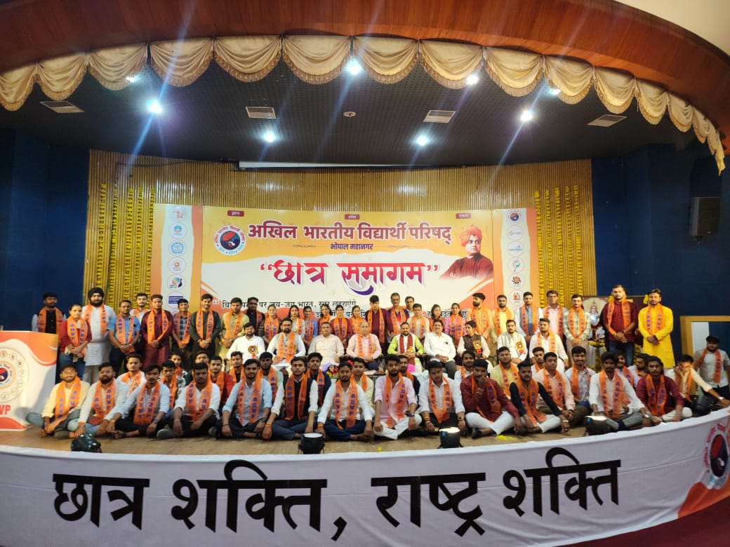 भोपाल । आज अखिल भारतीय विद्यार्थी परिषद भोपाल द्वारा छात्र समागम कार्यक्रम का आयोजन समन्वय भवन, अपेक्स बैंक भवन में हुआ। जिसके मुख्य अतिथि उच्चशिक्षा, तकनीकी मंत्री श्री इंदर सिंह परमार जी, विशेष अतिथि अभाविप के राष्ट्रीय महामंत्री श्री याज्ञवल्क्य शुक्ल जी और प्रांत मंत्री संदीप वैष्णव जी उपस्थिति रहे ।