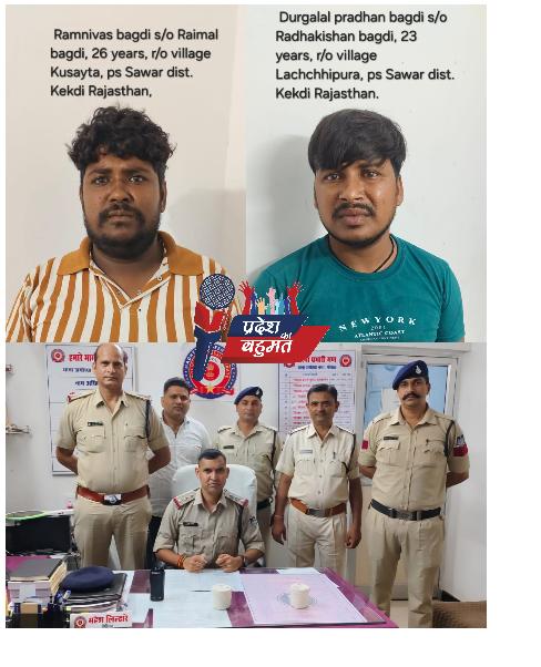 आरोपी क्र. 2. दुर्गालाल प्रधान बागड़ी पिता राधाकिशन बागड़ी उम्र 23 साल निवासी- ग्राम, लच्छीपुरा थाना सावर जिला केकड़ी राजस्थान